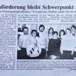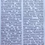 | 1997 | Veränderungen im Vorstand: Geschäftsführerin wird Bärbel Loge, Pressewartin Margret Gerdes, neue Jugendwarte werden Petra Hülsmann und Benjamin Heinemann; Es werden weiter Übungsleiter zur Erweiterung des Nichtschwimmerbereichs gesucht und die Mitarbeit der Eltern gefordert. |