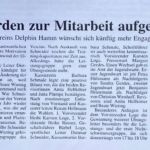 | 1985 | Der Gründer Ernst Koritzki verlässt den SV Delphin Hamm, Nachfolger als sportlicher Leiter wird Harald Rütz; Ernst Koritzki wurde vom Vereinsvorsitzenden Rainer Stock verabschiedet. Der Verein hat jetzt 233 Mitglieder. |