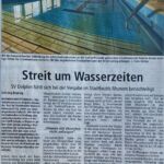 Der SV Delphin kämpft nach der beschlossenen Schließung des Lehrschwimmbeckens in Rhynern um Schwimmzeiten gegen größere Vereine und kann nur mit Hilfe der Lokalpolitik Einigungen erzielen und damit attraktive Schwimmzeiten behalten. https://www.svdelphinhamm.de/blog/einigung-ueber-schwimmzeiten/ |